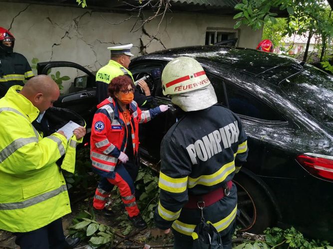 Accident la Ivești, duminică după-amiază. Un bărbat a fost la un pas de tragedie, după ce autoturismul pe care îl conducea s-a izbit de zidul unei case.
