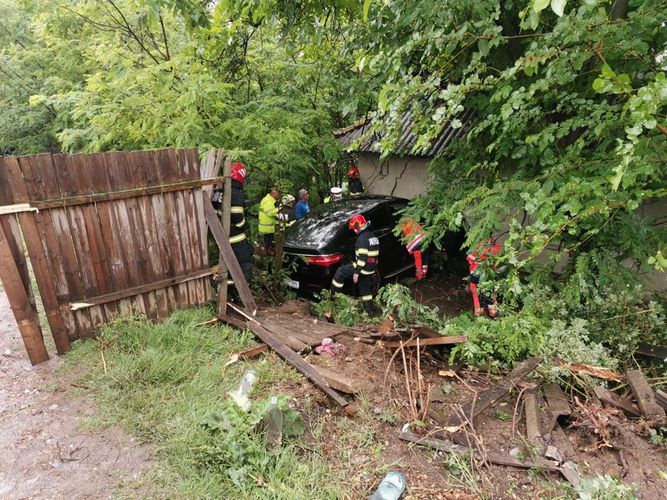 Mașina a lovit mai întâi o alta, parcată pe marginea drumului, a ricoșat și a părăsit carosabilul, trecând de gardul unei gospodării și oprindu-se în peretele imobilului.