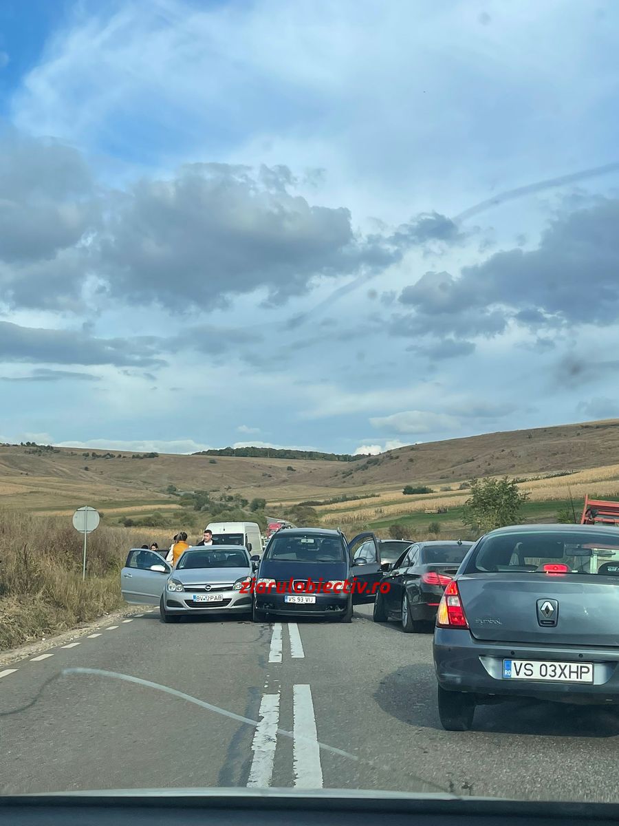 Traficul este paralizat pe ambele sensuri de mers. Polițiștii se află la fața locului.