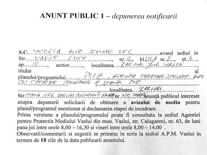 Acasă Publicitate Anunț Aviz mediu SC World Auto Service SRL