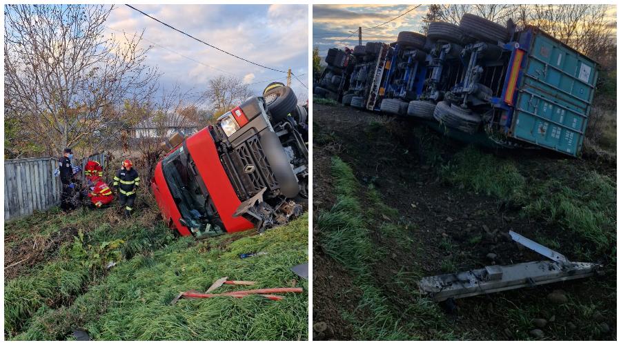 Un autocamion plin cu pământ s-a răsturnat pe DN 24, în zona localității Șapte Case. Accidentul a avut loc miercuri după-amiază, când traficul rutier a fost blocat din acest motiv timp de câteva ore.