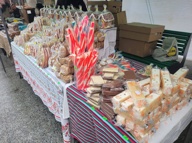 Componenta de artizanat este la fel de bine reprezentată. Standurile includ obiecte din lemn cioplit manual, împletituri, produse de pielărie și cușme realizate după modele tradiționale, dar și articole decorative – croșeturi, aranjamente hand-made și alte creații inspirate din specificul local sau din simbolistica sărbătorilor pascale.
