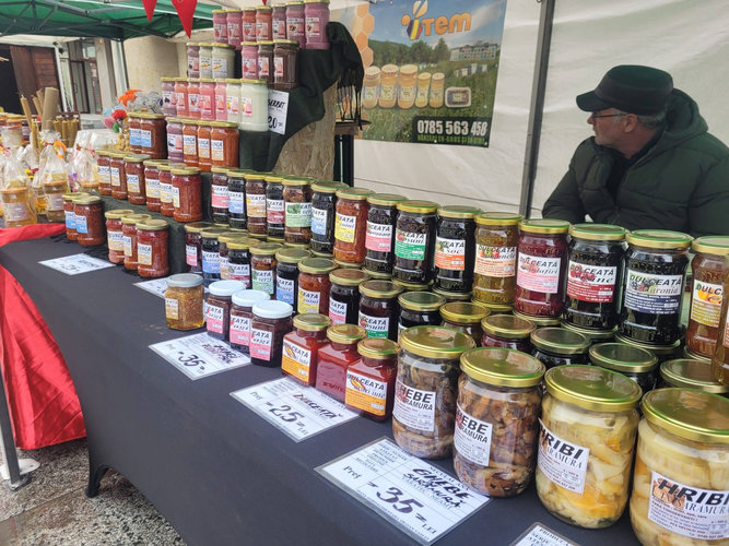 Zona alimentară este una consistentă. Vizitatorii pot găsi produse apicole, cozonaci și pască, turtă dulce, șerbet de casă, produse din ciuperci, brânzeturi și bere artizanală, alături de verdețuri și trufandale de sezon. Oferta este orientată către produse realizate în gospodării sau în unități mici de producție, păstrând rețete și metode tradiționale.