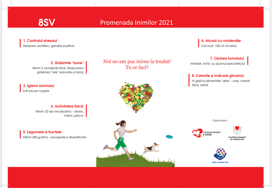 important să știm că, începând cu anul 2000, pe 29 septembrie este marcată, în fiecare an, Ziua Mondială a Inimii, la iniţiativa Federaţiei Mondiale a Inimii şi sub patronajul Organizaţiei Mondiale a Sănătăţii şi al UNESCO. Bolile cardiovasculare reprezintă principala cauză de mortalitate în Europa, atât la femei, cât şi la bărbaţi, potrivit Cartei europene a sănătăţii cardiovasculare, iar acest lucru este îngrijorător. Este necesar să avem grijă de inima noastră în fiecare zi, iar pentru asta trebuie să mâncăm cât mai sănătos, să fim cât mai activi, să facem cât mai multă mișcare în aer