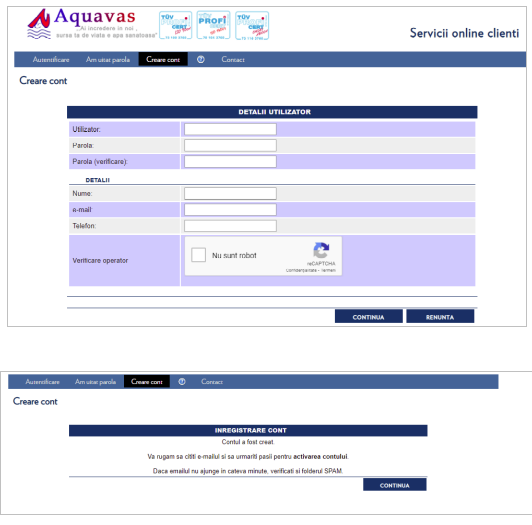 Pentru crearea unui cont pe site-ul www.aquavaslui.ro se procedează astfel: