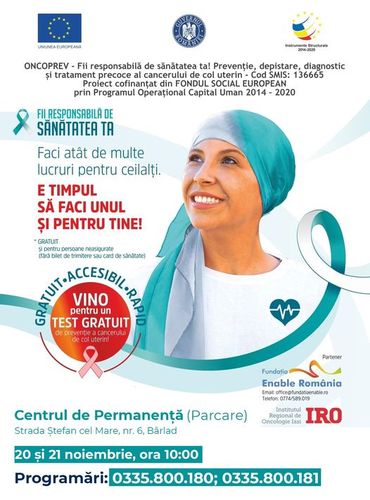 Bârlădencele cu vârsta cuprinsă între 24 și 64 de ani au iarăși ocazia de a profita de prezența la Bârlad a caravanei IRO Iași, prin intermediul căreia pot beneficia de un test gratuit pentru depistarea cancerului de col uterin.