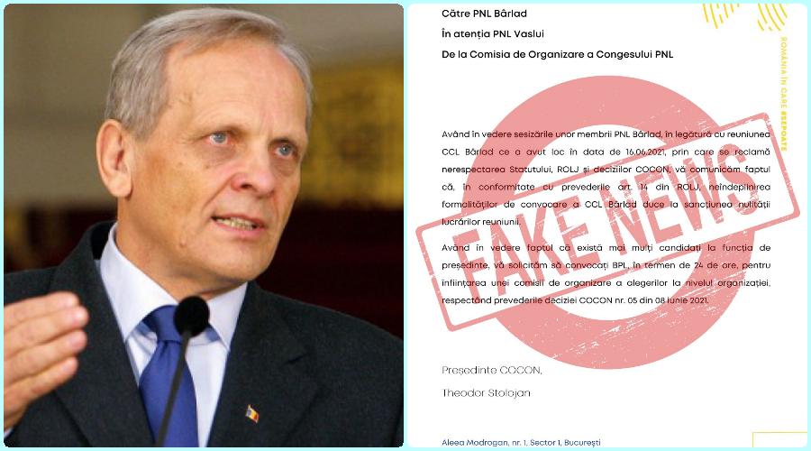 Reporterii Ziarului Obiectiv l-au contactat pe Theodor Stolojan, președintele Comisiei de Organizare a Congresului PNL (COCON) pentru a-i solicita opinia în legătură cu documentul bizar care circulă pe diverse rețele, publicat și de un cotidian județean, pe care apare numele său și care anunță că alegerile ar fi anulate (detalii AICI)