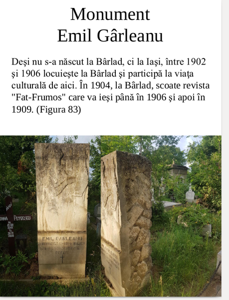 Sorin a fost mâhnit să constate, în timpul vizitelor sale la Bellu, degradarea avansată a monumentelor de la mormintele celor care au făcut din Bârlad un oraș cu faimă culturală.