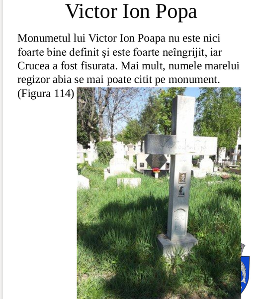 Un alt exemplu este crucea de la mormântul lui Victor Ion Popa, vizibil și grosolan lipită cu un adeziv după ce s-a frânt de la mijloc, probabil în timpul unui act de vandalism, iar pe mormântul fraților Davidoglu crescuse un copac.
