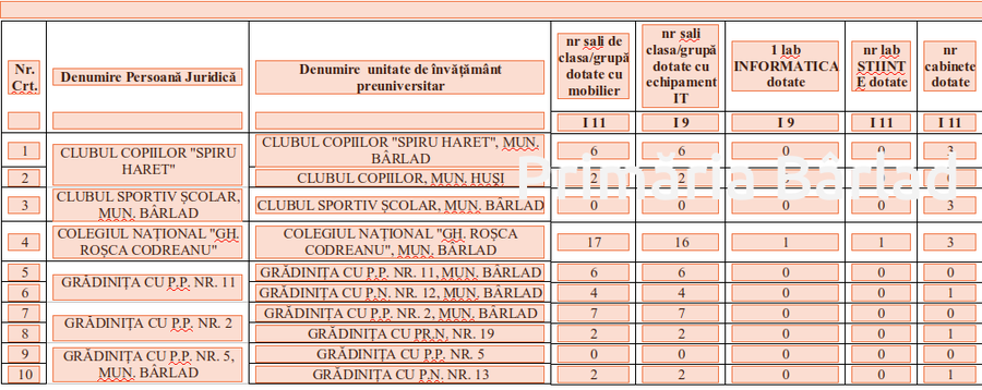 Lista unităților de învățământ din Bârlad care vor fi dotate cu tehnologie de ultimă generație