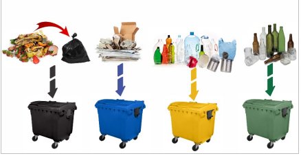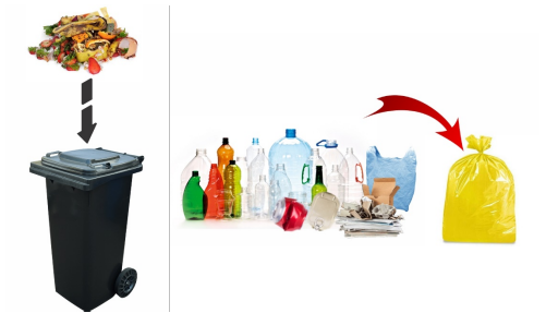 *** fiecare gospodărie deține: pubela tradițională și primește lunar saci pentru depunerea sortată a deșeurilor reciclabile: plastic&metal si hartie&carton. Deseurile reciclabile precum ambalaje din sticla se depun in containerele verzi de la platforma de colectare apropiata.