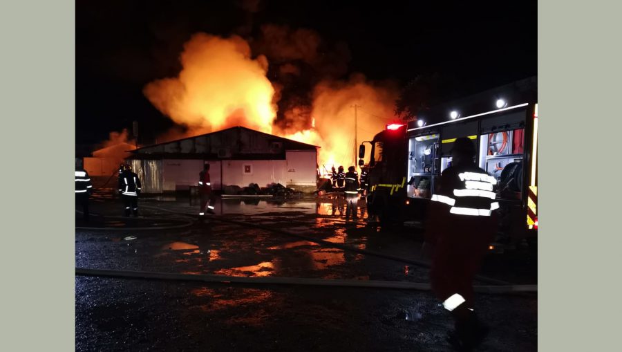 Un incendiu uriaș a izbucnit marți noaptea la un depozit de materiale plastice din apropierea Gării Bârlad.