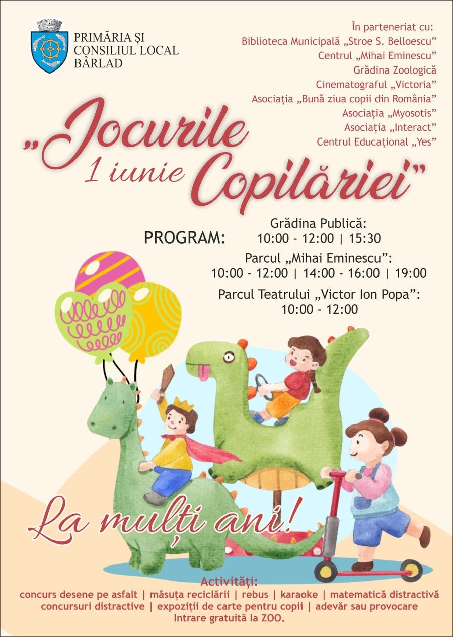 Așadar, de Ziua Internațională a Copilului, Bârladul va fi sub ”ocupație”. Sute de copii mai mari și mai mici sunt așteptați să ia cu asalt punctele strategice ale veseliei.