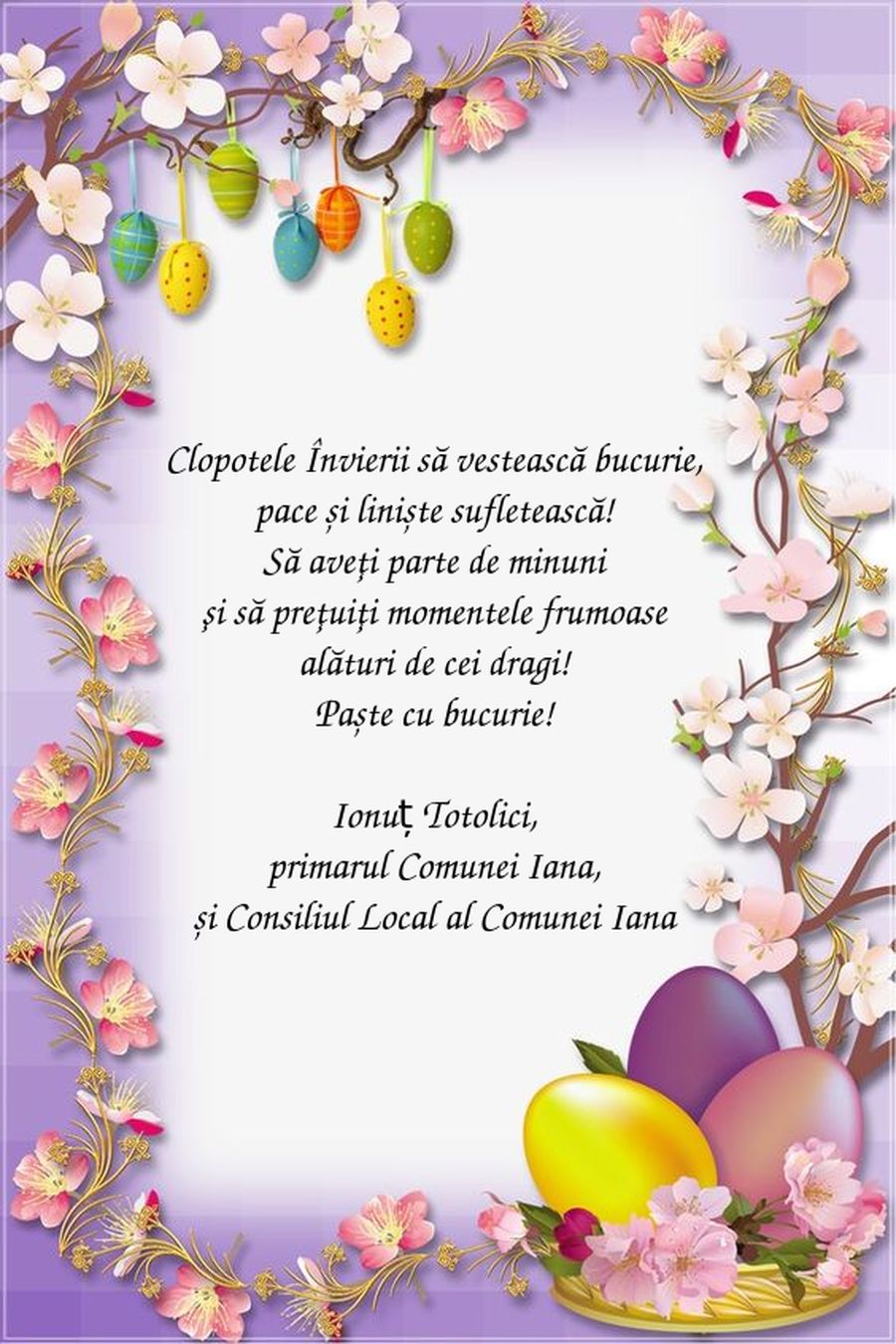 Mesaj de Paște pentru locuitorii Comunei Iana