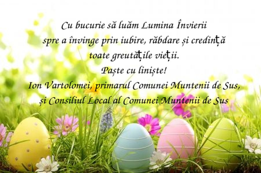 Mesaj de Paște pentru locuitorii Comunei Muntenii de Sus