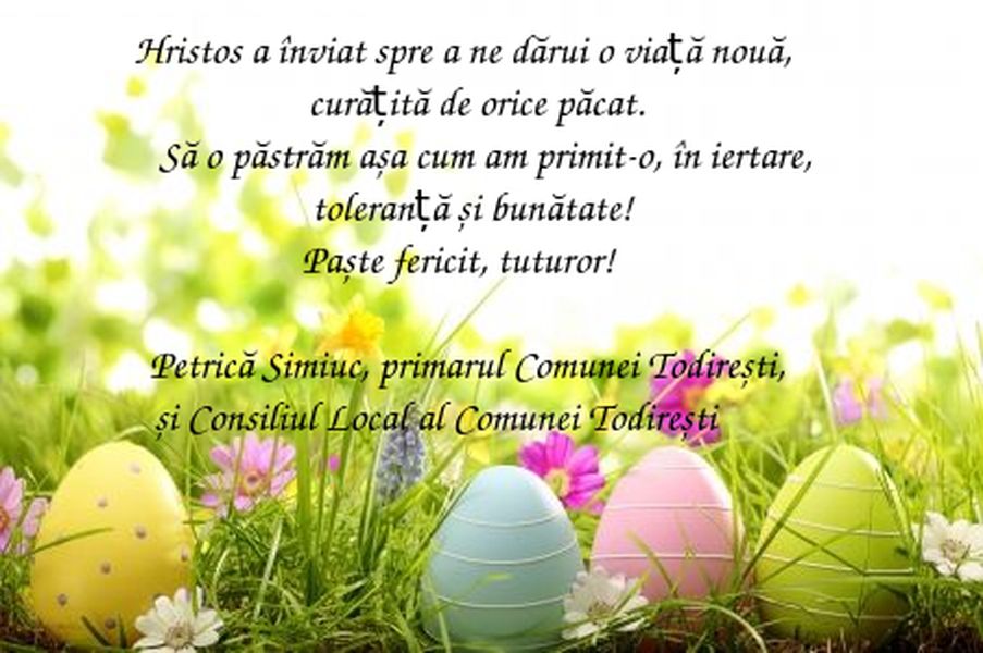 Mesaj de Paște pentru locuitorii Comunei Todirești