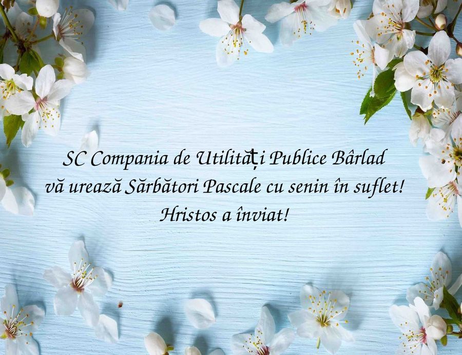 Mesaj de Paște transmis de Compania de Utilități Publice Bârlad