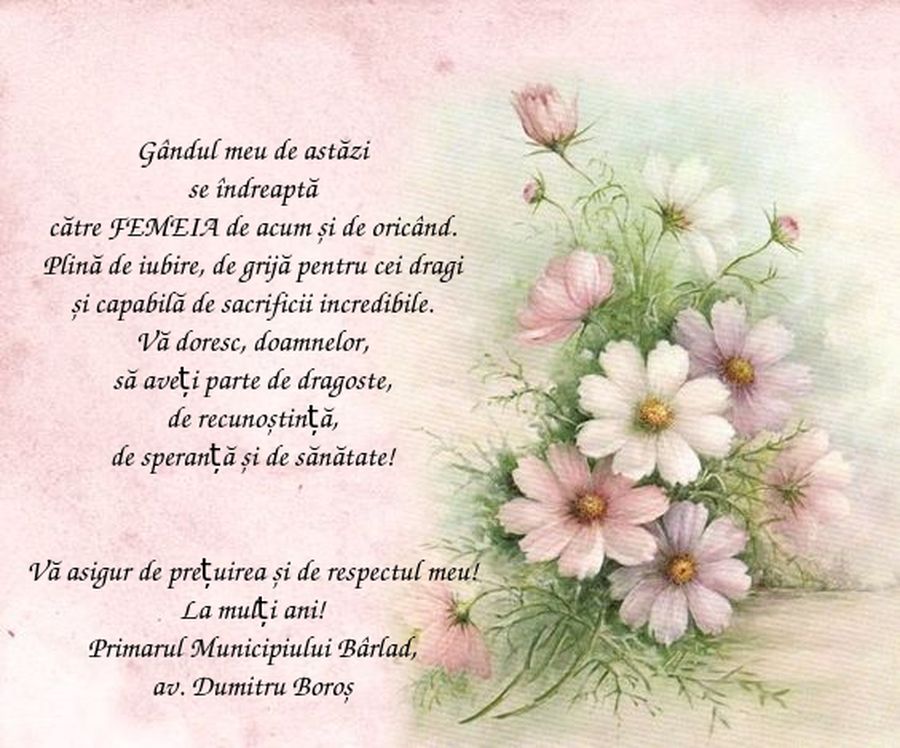 Mesajul primarului Dumitru Boroș, cu ocazia Zilei de 8 Martie