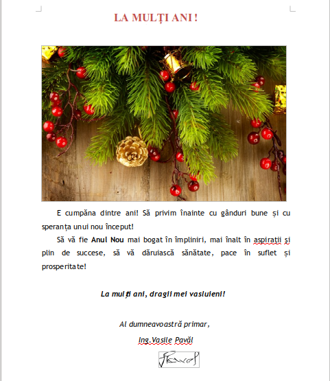 Mesajul primarului Vasile Pavăl cu prilejul Anului Nou