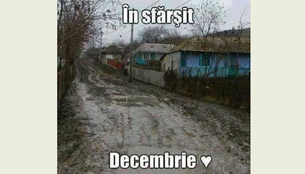 Unul dintre săteni a postat pe cel mai vizibil grup de socializare din Gherghești o fotografie cu o stradă plină de noroi și de băltoace, pe care este scris ”În sfârșit, decembrie!”.