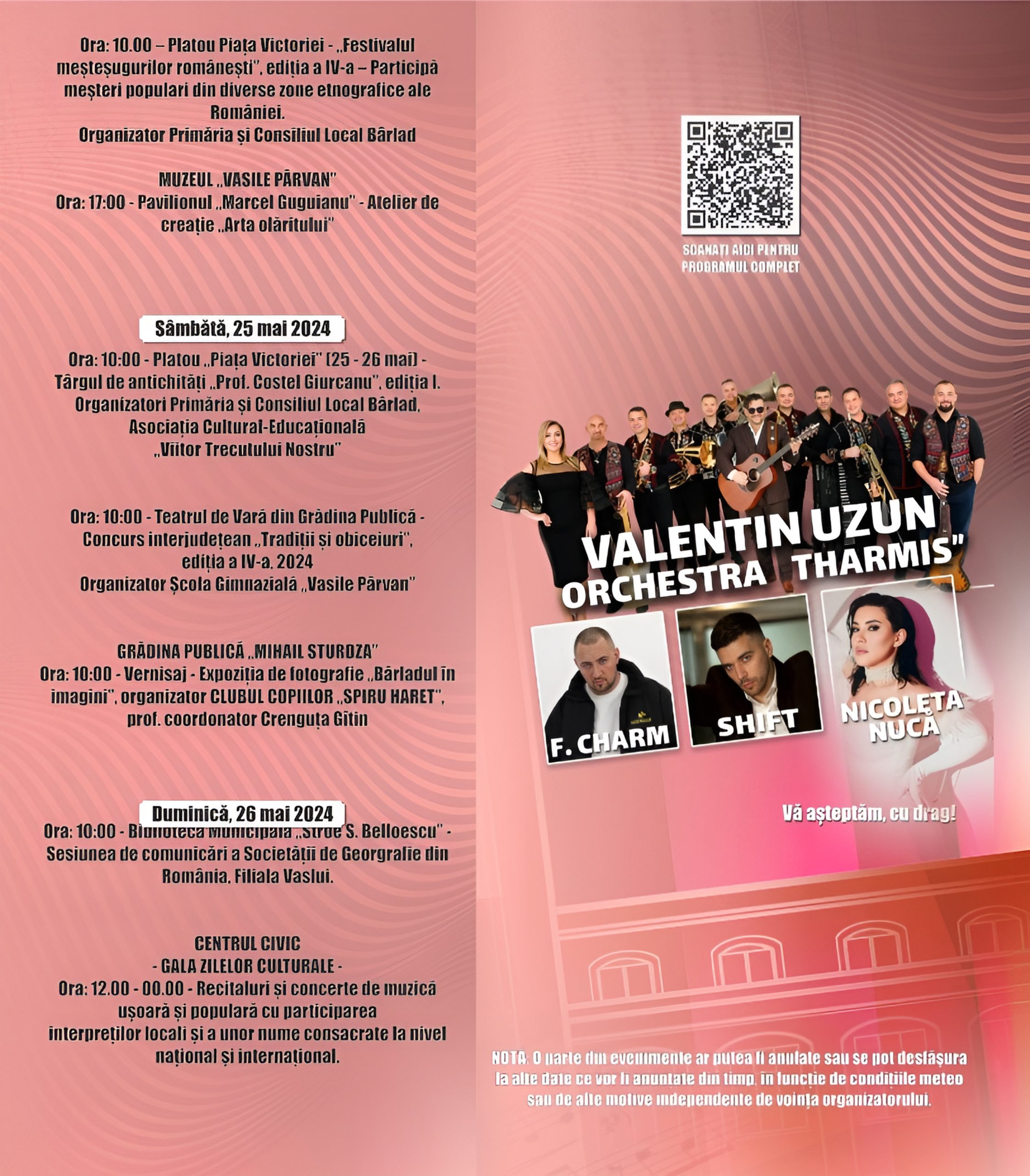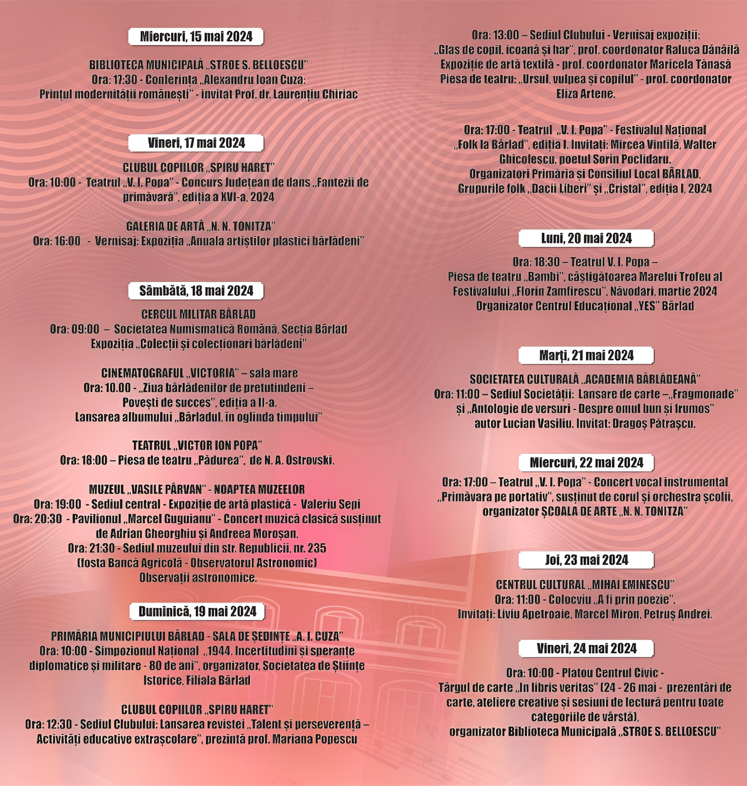 Programul Zilelor Culturale ale Bârladului, ediția a XXXVIII-a, 2024