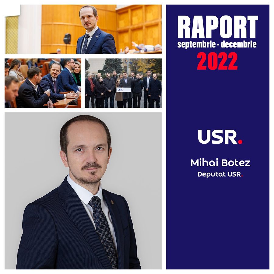 Pentru raportul actual, îi invit pe toți să acceseze link-ul https://mihaibotez.ro/raport-de-activitate-septembrie-decembrie-2022/, unde îl vor putea lectura”. a declarat deputatul Mihai Botez.