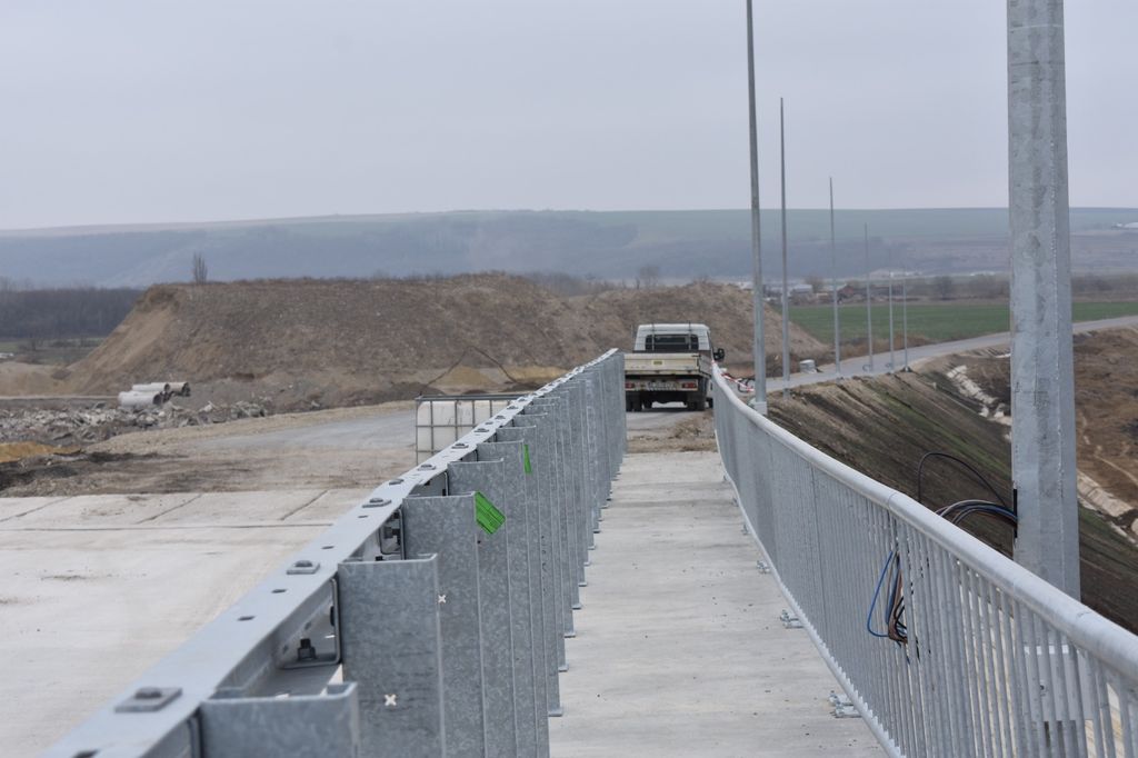 Prin urmare, se lucrează la pasajul de la km 0+405 m, unde deja au fost montați parapeții pietonali și cei de siguranță, stâlpii de iluminat și se montează în prezent panourile de siguranță.