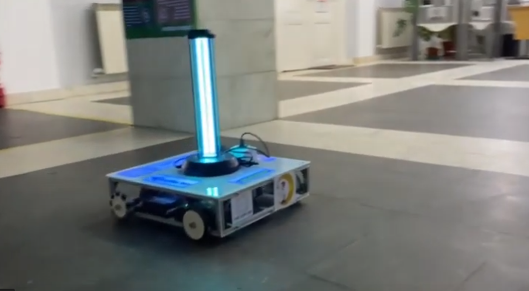 ”Lampa UV bactericidă folosește radiațiile de lungime scurtă 253nm pentru a distruge la nivel ADN si ARN structurile virusurilor și a microorganismelor. Acest proces asigură în proportie de 99% distrugerea si stoparea înmulțirii microorganismelor care pot produce boli. Lampa din dotarea robotului acționeaza multidirecțional acoperind 360 grade, realizând astfel o dezinfecție foarte rapidă. Ceea ce a pornit ca un vis îndrazneț a devenit în scurt timp realitate prin munca echipei. Ceea ce ne-a ambiționat cel mai tare a fost ideea de a crea ceva în folosul comunității, de a ajuta în lupta contra pandemiei. Acest obiectiv ne-a motivat să depășim toate dificultățile întâmpinate pe parcurs”, a declarat profesorul Cătălin Angheluță.