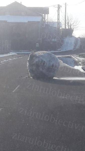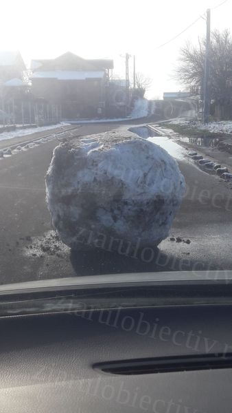 Încă de la primele ore ale dimineții de joi, locuitorii străzii, dar și trecătorii, au avut surpriza de a descoperi exact în mijlocul carosabilului un bulgăre de zăpadă gigant.