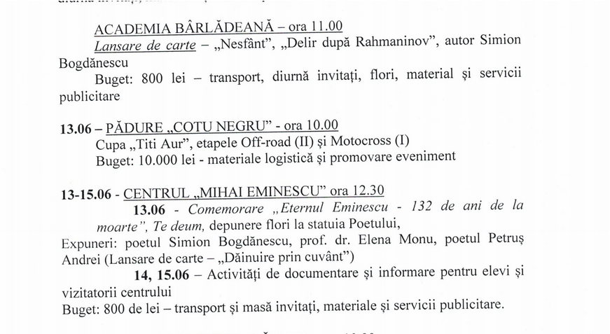 Programul ediției va fi supus dezbaterii Consiliului Local Bârlad, care se va întruni în ședință ordinară joi, 27 mai.